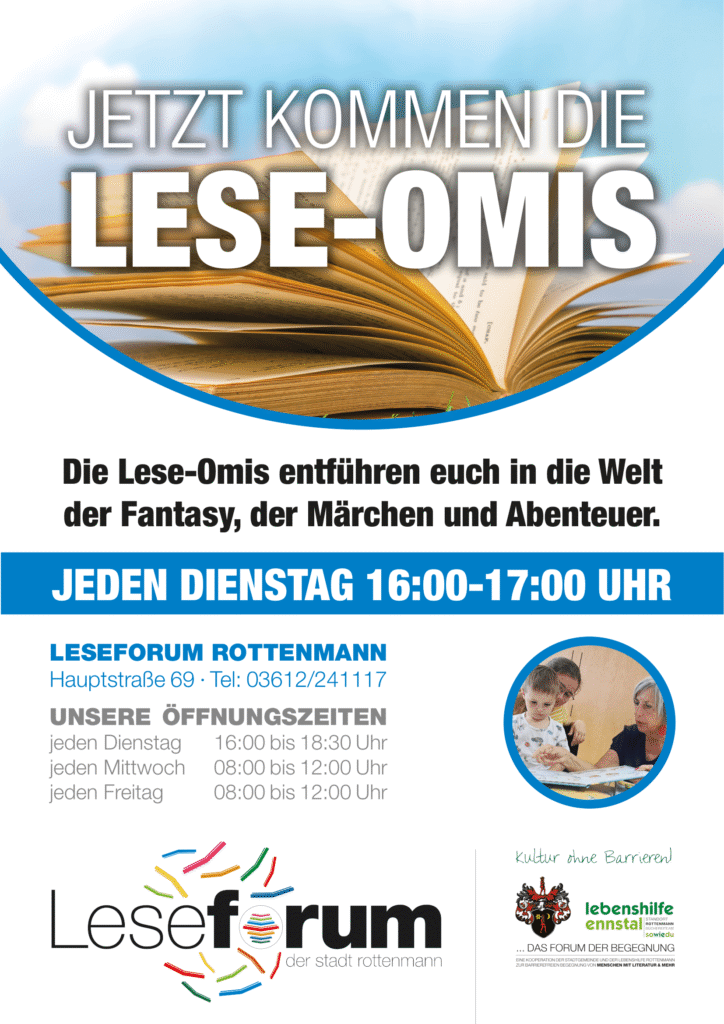 Die Lese-Omis kommen jeden Dienstag von 16 bis 17 Uhr ab 30.9.2025